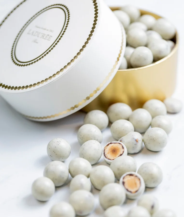 Welcome to the enchanting world of Ladurée sugared almonds. Ladurée sugared almonds are available in a range of refined colours, iconic of the House, to decorate your table or give as gifts.