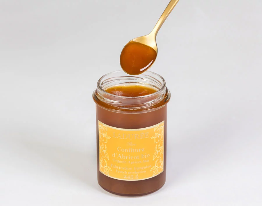 Jam prepared from organic apricots, cooked with organic cane sugar in copper cauldrons using traditional techniques.